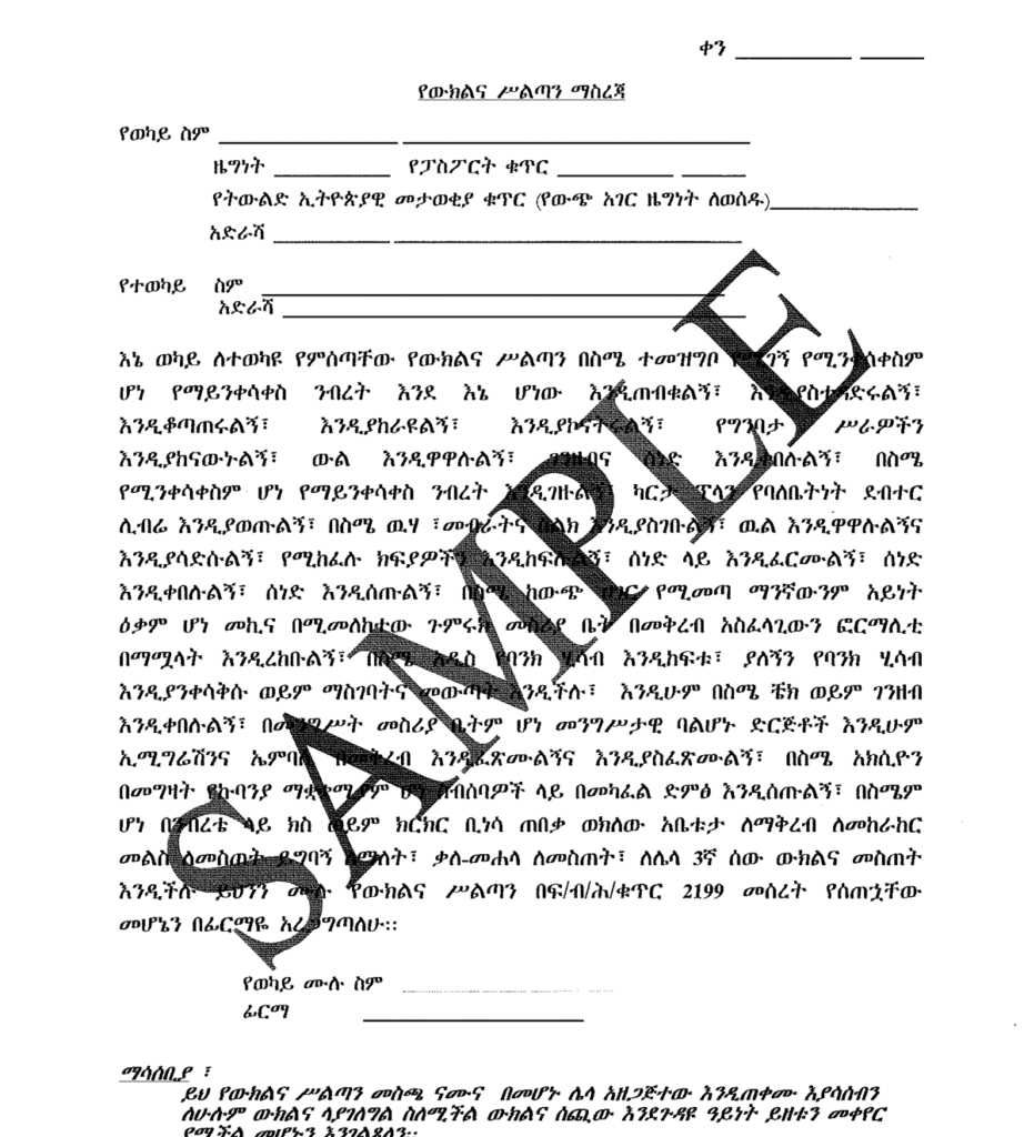 Service fee: $62 (U.S. dollars) per document, payable to the Embassy of Ethiopia by money order.